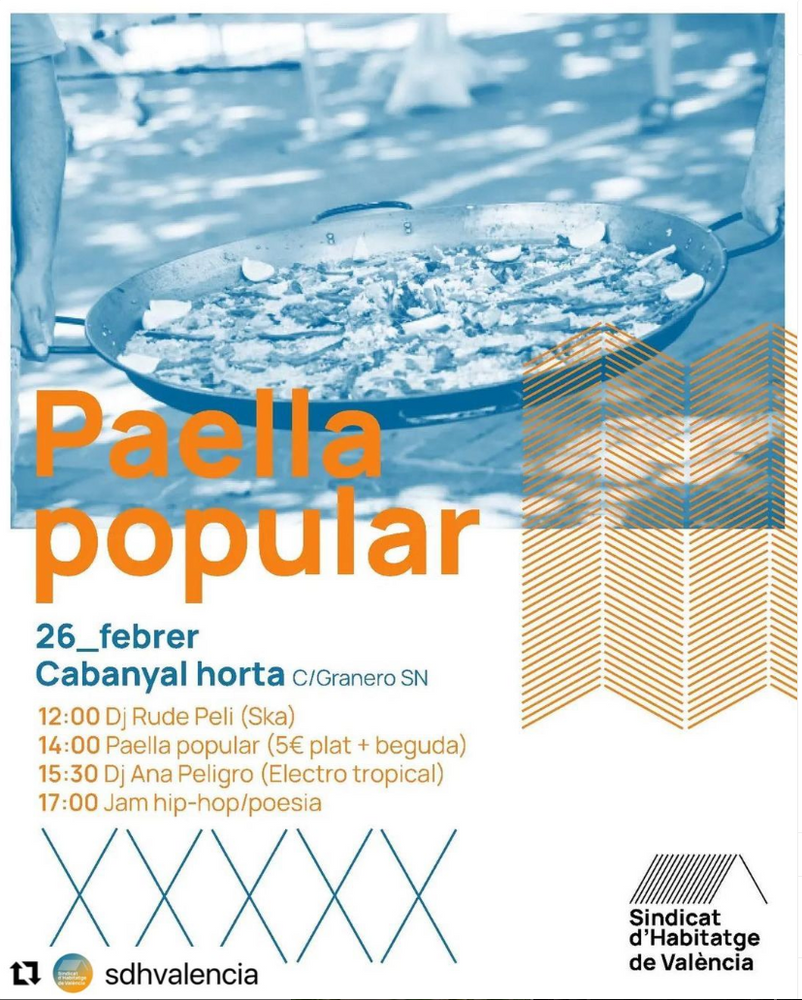 Paella Popular Sindicat d’Habitatge Valenciafebrero 19, 2023/en Uncategorized Este domingo @sdhvalencia organiza paella popular en #cabanyalhorta n Seguidlas para más info! https://cabanyalhorta.es/wp-content/uploads/2024/02/logo-cabanyalhorta-negro.png 0 0 admin https://cabanyalhorta.es/wp-content/uploads/2024/02/logo-cabanyalhorta-negro.png admin2023-02-19 23:00:002023-02-19 23:00:00Paella Popular Sindicat d’Habitatge Valencia